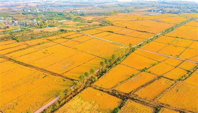 11月19日,记者在肥东县梁古路沿线拍摄的金色田园。“立冬”过后,肥东县各地晚稻相继进入收获期,稻田宛若黄金铺地,一片丰收景象,美不胜收。