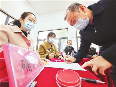 该镇政府和三合社区的工作人员及志愿者早早来到分房现场,为安置群众配发口罩,做好疫情防控工作,引导车辆有序停放。提前为大家做好选房号登记,主动介绍分房中的注意事项,解答群众的疑惑。大家在工作人员的引导下有序进场,凭借征迁协议和身份证,在墙上的楼层图上选择房屋位置和面积,并依规办理确认手续。据了解,为最大限度满足群众住房需求,全力做好分房准备工作,该镇安置办将待分配房源进行切割,并重新组合,以村民组为单位,统一抓阄,确定分房顺序。社区第一时间将分房注意事项、办理流程、材料准备等事宜进行公示,让群众做到有备而来,可以“一次性”选上心仪的房屋。对于住在外地的群众,村民组长通过电话逐一联系,及时传达相关讯息,确保“不漏一人、不落一户”。为确保选房工作公平、公正、公开,现场还邀请了县、镇两级人大代表、镇党代表、群众代表以及公证处、镇纪检、司法等部门等全程参与。居民凭拆迁安置证明进入现场,随机叫号,由工作组人员全程陪同,并详细讲解房屋面积和户数概况,既方便回迁户看房,又能让回迁户心中有底。科学的方案、阳光的程序、周到的服务,赢得了群众的全力支持和配合,现场有条不紊、忙中有序。截至11月18日上午,阳光花园安置小区已完成420余户居民的签约分房任务。