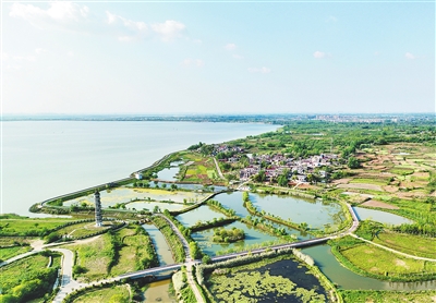 “大湖淡雅西湖媚,未若巢湖气象雄”。5月8日,俯瞰肥东县长临河镇玉带河湿地,碧波荡漾的巢湖与蓝天、白云以及村庄相互辉映,构成了一幅水清、岸绿、生态美的入夏风光。近年来,肥东县加强环巢湖湿地建设,净化巢湖水质、恢复生态多样性和提高防洪蓄洪能力,致力于实现碧水、安澜、富民的目标。