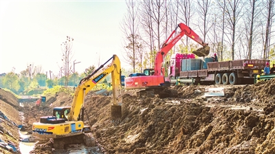 11月19日,肥东县石塘镇马站河马集社区段,石塘镇抢抓晴好天气时机,全面开展水利工程升级建设和维护,河流工地有序作业,提升防洪、灌溉能力和农业综合生产能力。