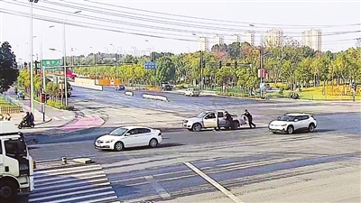 当天9时40分左右,一辆银色皮卡车驶到龙城路与长江东路交口时,突然抛锚。因该路段来往车辆较多,一时间纷纷变道避让,出现拥堵,存在极大的交通安全隐患。司机也赶忙下车,打开引擎盖查看原因。由于检查不出抛锚原因,司机在原地急得直跳脚……