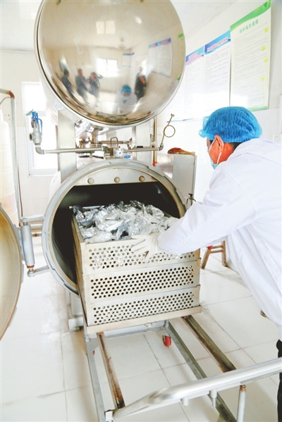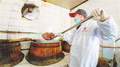 一种美味的形成,自然少不了生产环节中的一道道工序。“驴巴生产包括解冻、分割、腌制、配料、卤肉、分拣、包装、高温消毒等环节。其中,下锅卤肉需要两个半小时。”经过多年实践,老黄对于驴肉的加工环节早已烂熟于心。
