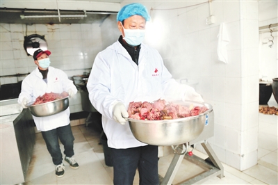 入冬以来,气温骤降。走进肥东县石塘镇“合肥市黄晓弟驴巴制品厂”,只见加工车间内热气腾腾,锅中,一块块驴肉即将卤制完成,整个房间无处不弥漫着肉香味……