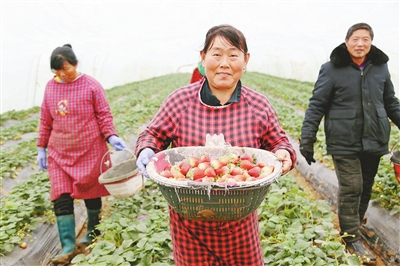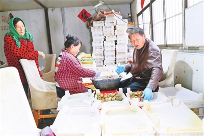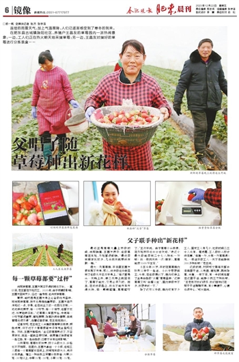 在肥东县古城镇滁阳社区,养殖户王昌友的草莓园内一派热闹景象:一边,工人们正在热火朝天地采摘草莓;另一边,王昌友对摘好的草莓进行分拣装盒……