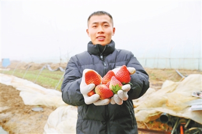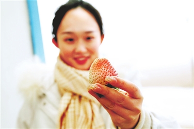 小王今年26岁,平时在草莓园内协助父亲干一些活。小伙子思想前卫,今年,在他的提议下,园内还种上了全身白色的“淡雪”草莓品种。“这种草莓又叫‘白雪公主’,国内种的并不多,我想尝试一下。”