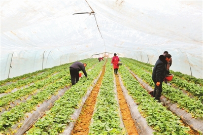 这段时间,村民郑文君每天都会来园里干活,从栽苗、铺地膜,再到除草、采摘,一年下来,有一半时间她都在这里干活,能挣个两三万块钱呢。“王老板对我们很好,我们姐妹们在一起干干活聊聊家常,有个事情干,心情也很开心。”郑大姐说。