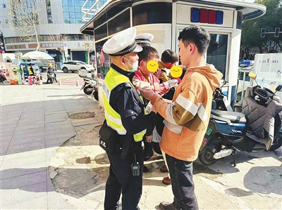 这边的民警当起临时“奶爸”暖心照顾着俩萌娃,那边孩子的父母高先生夫妻俩也在焦急地寻找中,最终,得知孩子下落后,俩人急忙赶到岗亭接回了孩子,并对民警连声道谢。