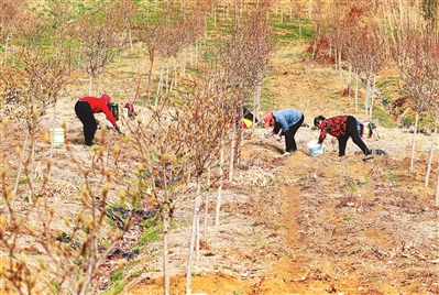 3月1日,在肥东县众兴乡华光社区,当地群众正在林间劳作。
