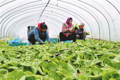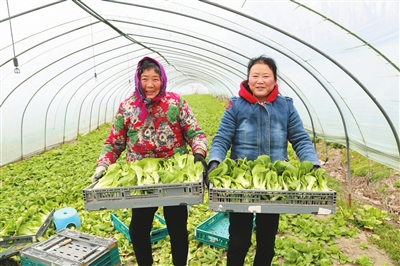 凭借多年积累的种植经验,如今的方传喜在种植蔬菜方面是“一把好手”。在他承包种植的温控大棚里,各类蔬菜长势正旺。“这些年我种的全是叶类菜,相比其他蔬菜,种叶类菜风险小、见效快,一个棚一年至少能出七茬菜。一般来说,夏季蔬菜生长较快,28天左右即可采摘。冬季慢一些,大约45天成熟,一年亩产能达到3万斤。”说起蔬菜种植,小方如数家珍。